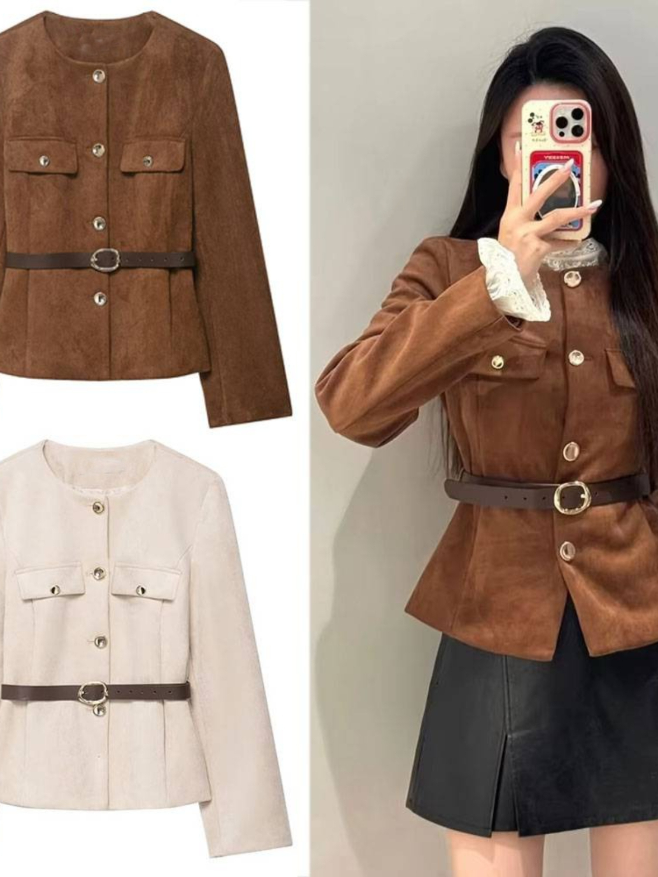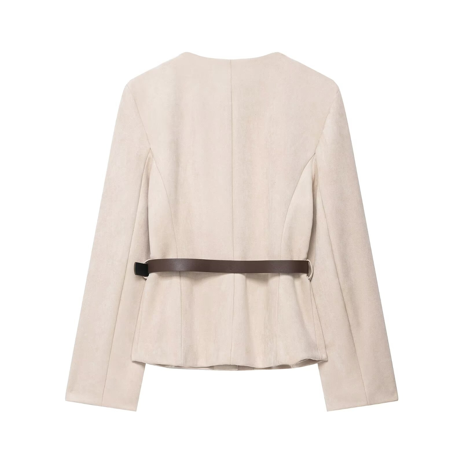 Women'S Belted Blazer | Round Neck Long Sleeve Jacket for Fall Office Wear, Chic, Single Breasted, Regular Fit