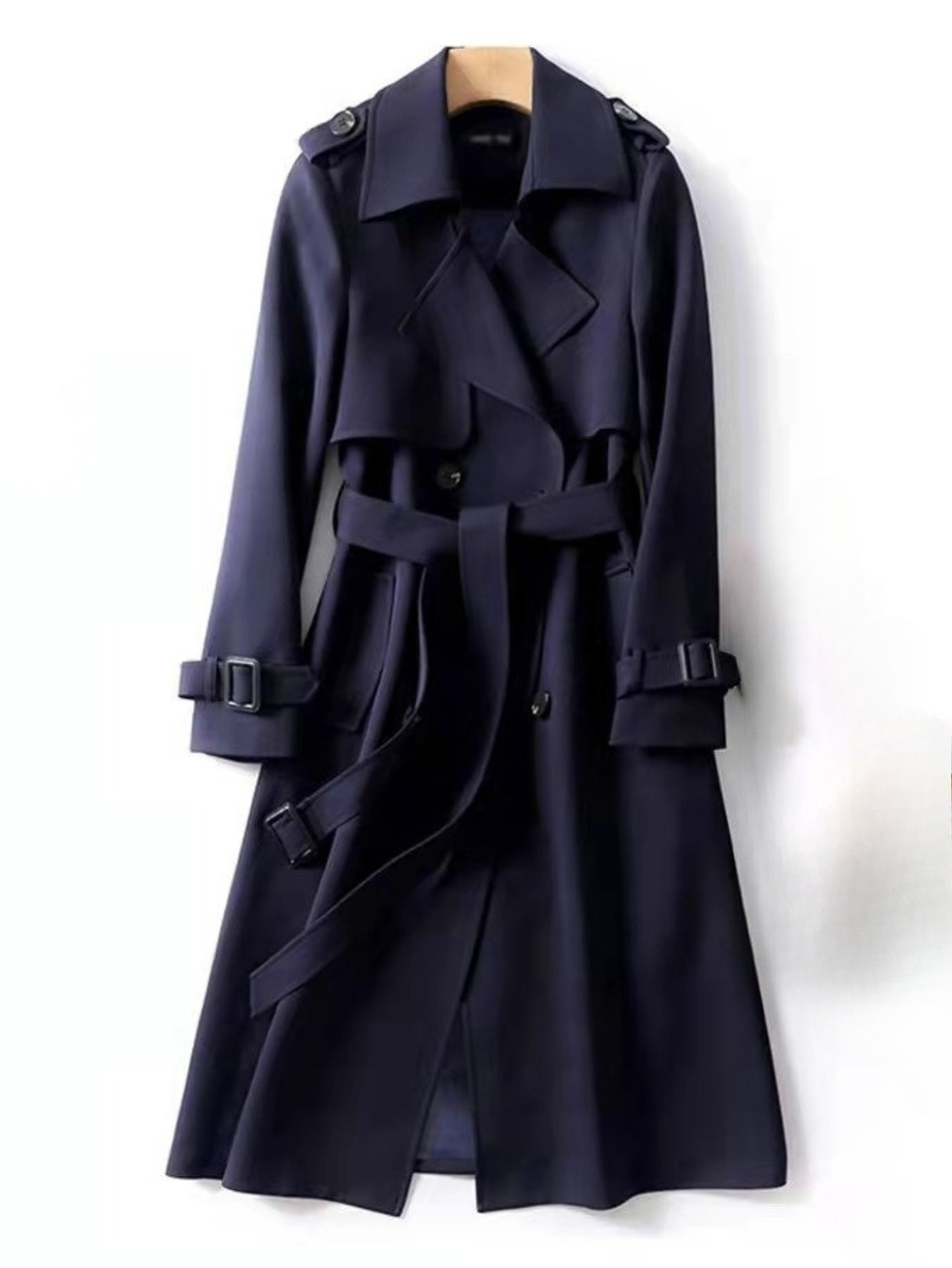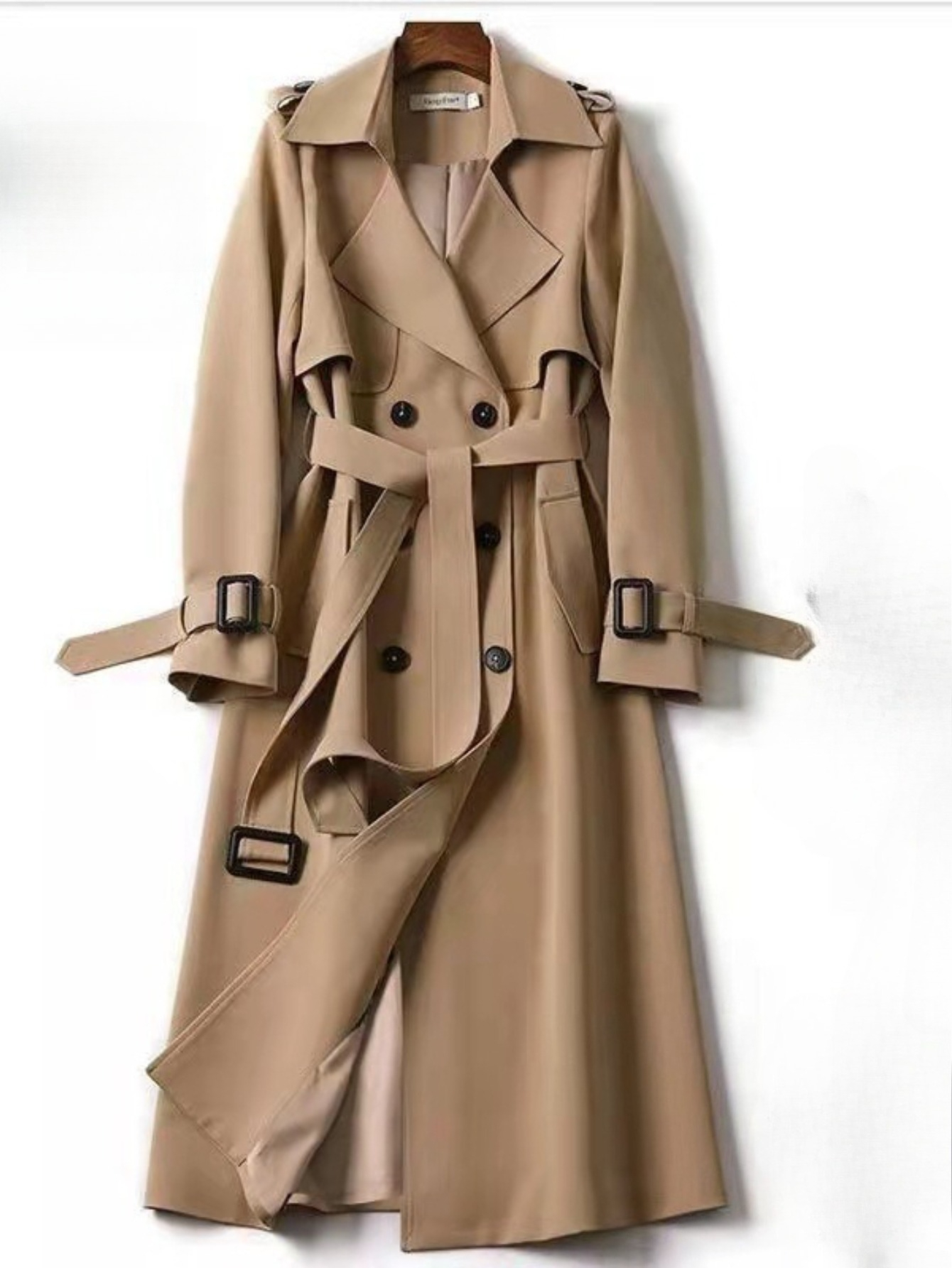 Women's British Style Medium-Length & Long Trench Coat - Knee-Length Button-Front Closure Coat with Wrinkle Detailing, Loose Fit All-Season Outerwear (Machine Washable) for, Casual & Smart-Casual Attire