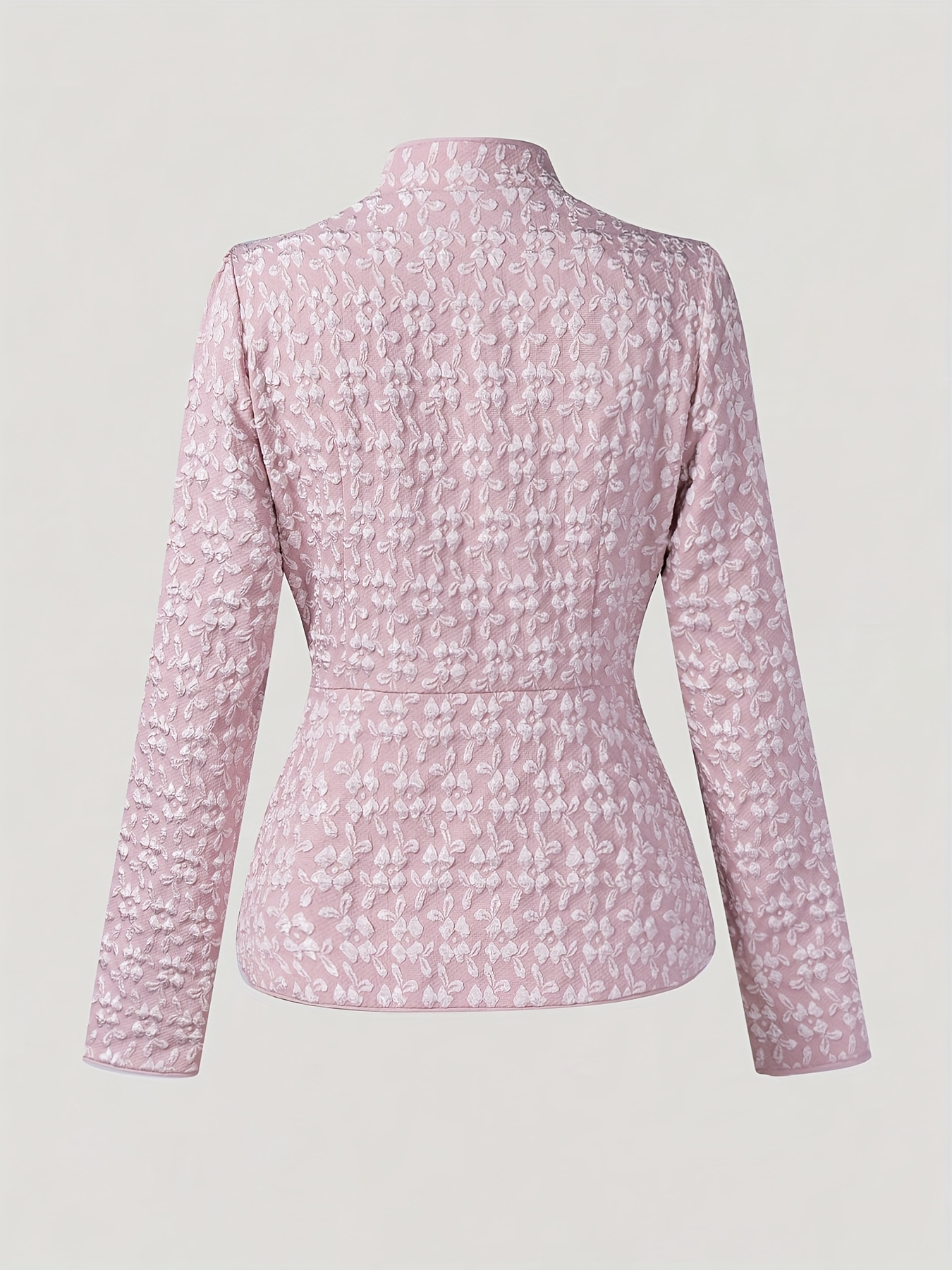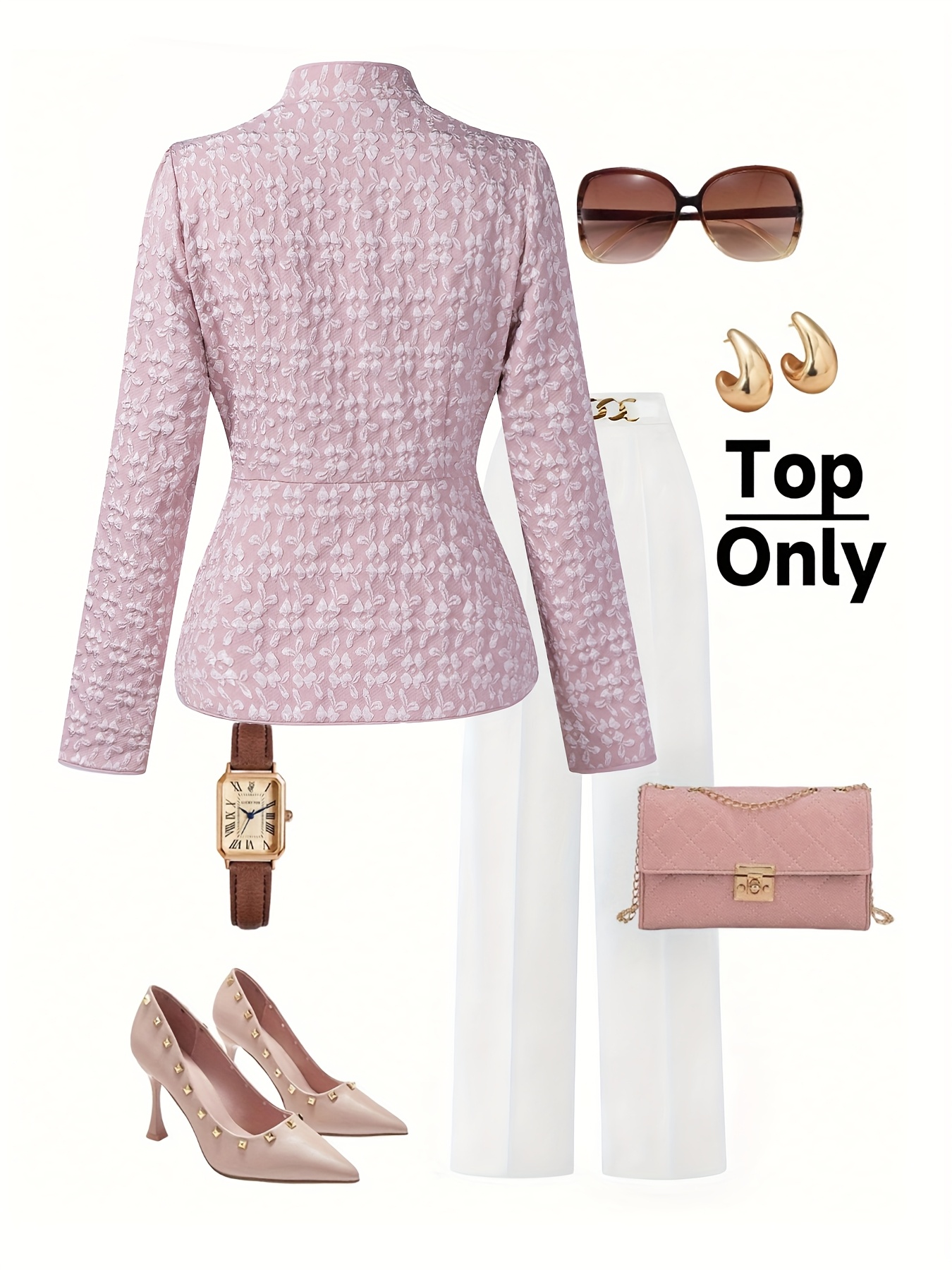 Women'S Elegant Pink Jacquard Coat - Chic Office to Party Outfit, All-Season Formal & Casual Outerwear, Button Front Closure, Structured Fit for Christmas, New Year, Everyday Special Events - Women'S Fashion Coat, Christmas Attire