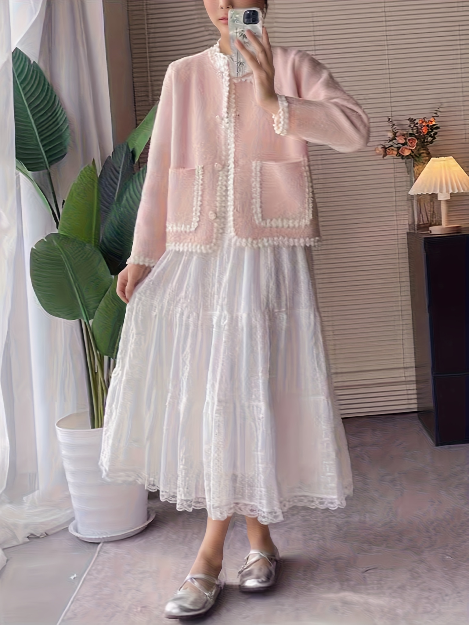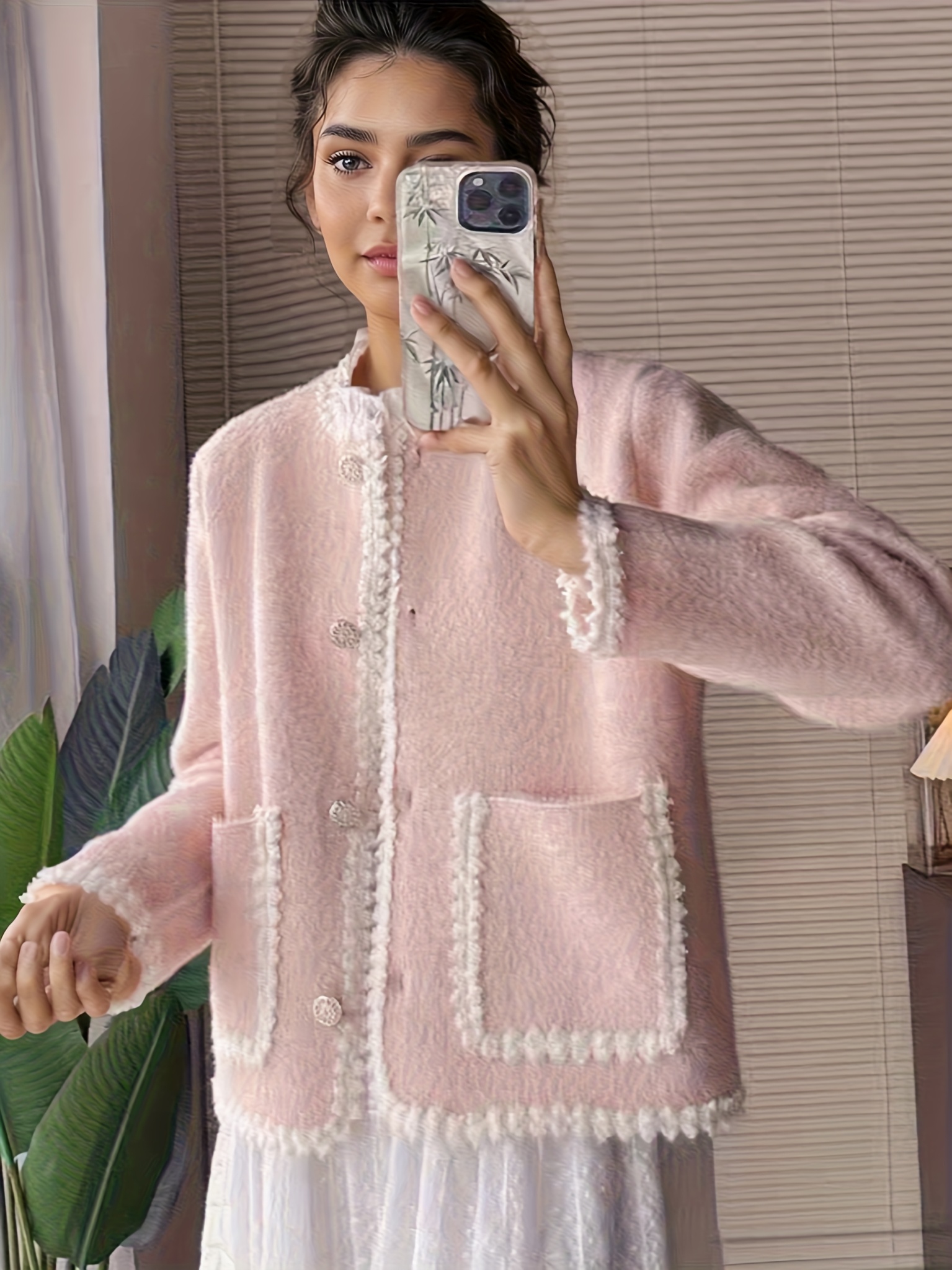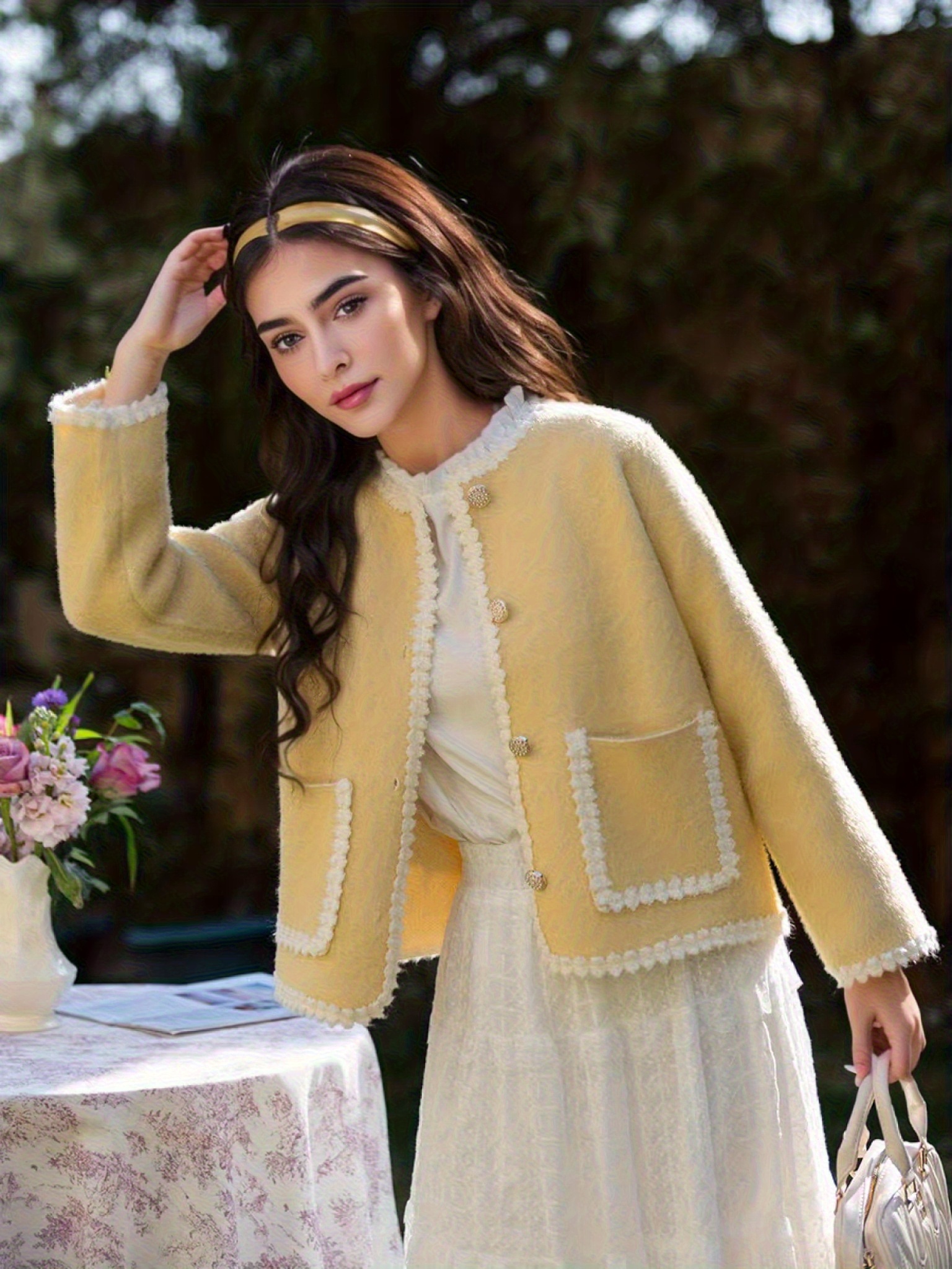 Women's Elegant Solid Color Winter Jacket - Single-Breasted Button Front Coat with Pockets, H-Line Silhouette, Long Sleeve Warm Outerwear for Fall & Winter, Casual or Dressy Occasions