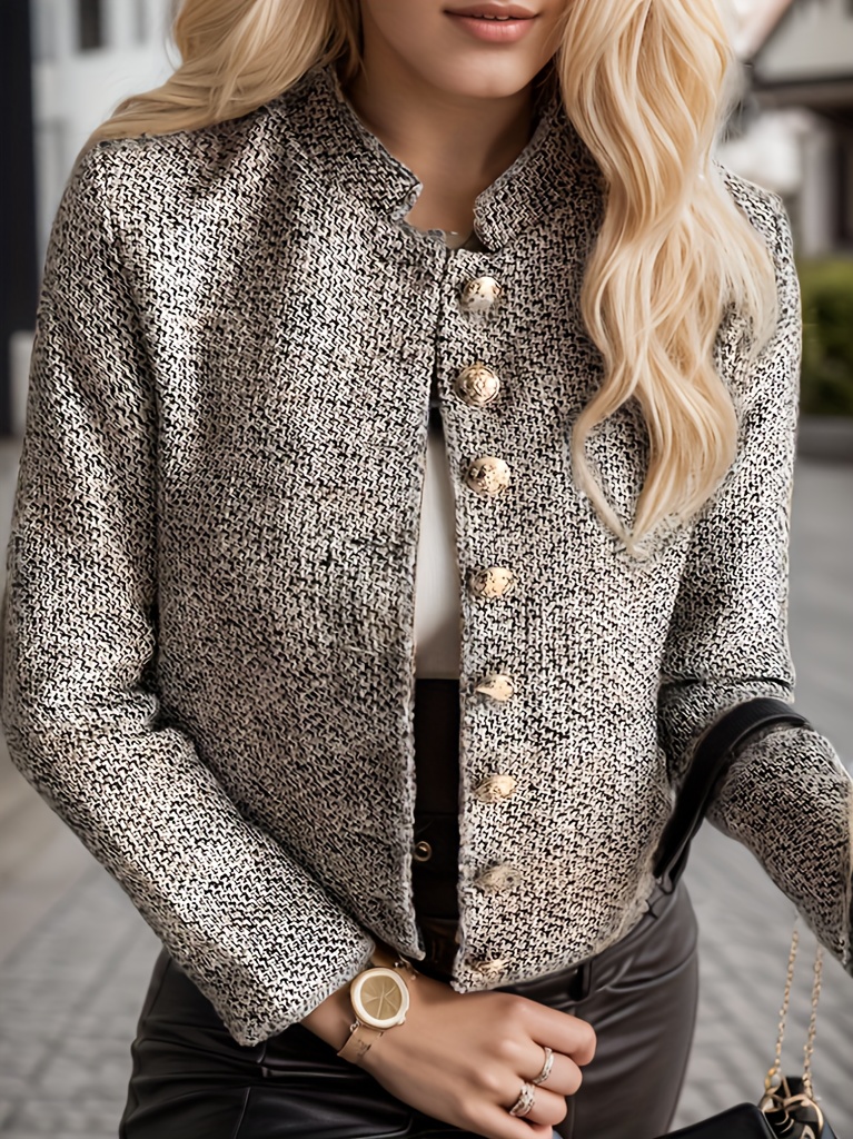 New Lightweight Polyester Elegant Women'S Chic Tweed Blazer - Long Sleeve, Button Front, Non-Sheer, Solid Color Jacket For Work & Casual, Elegant Tweed Blazer