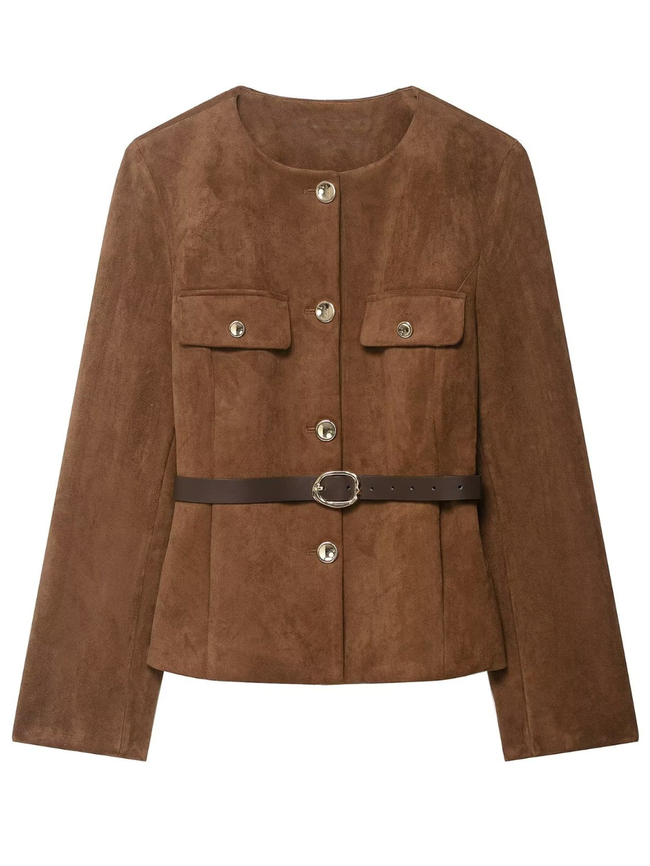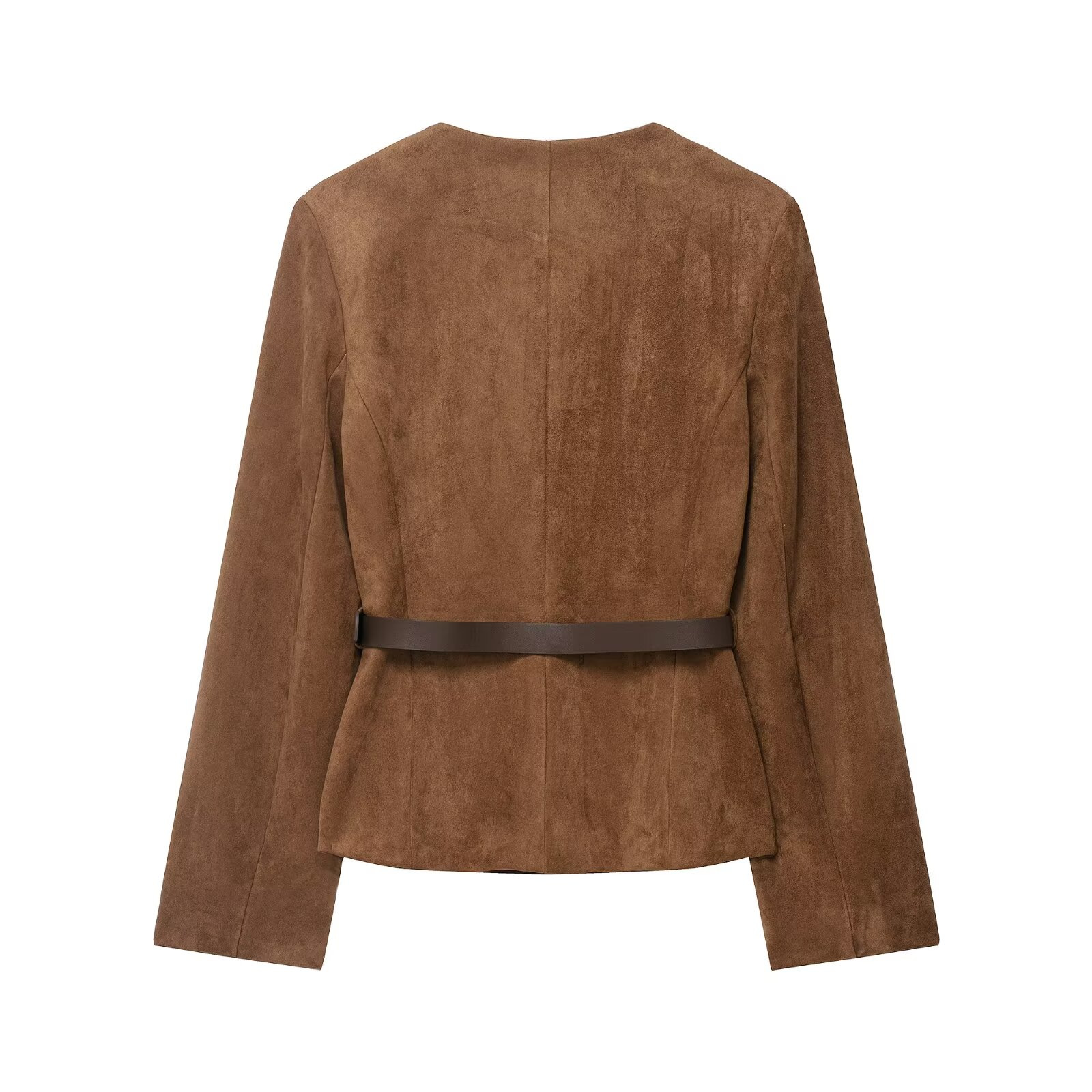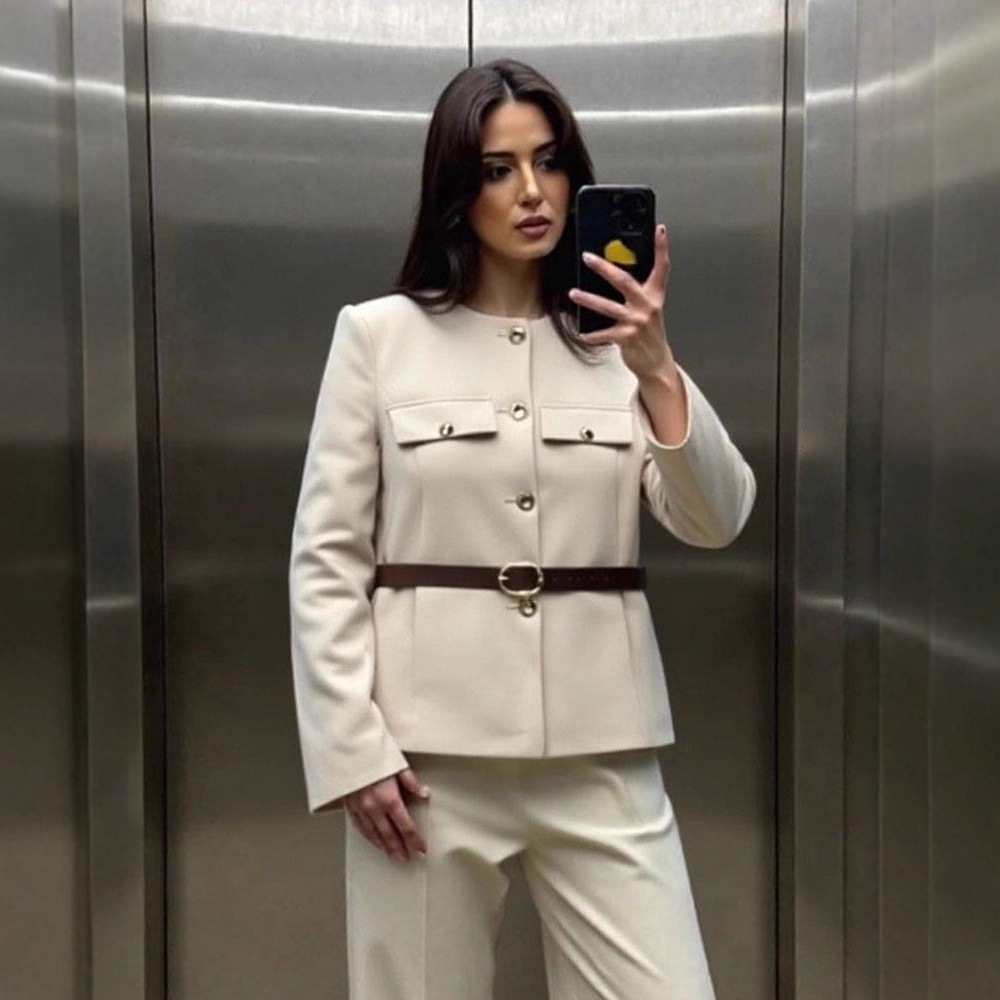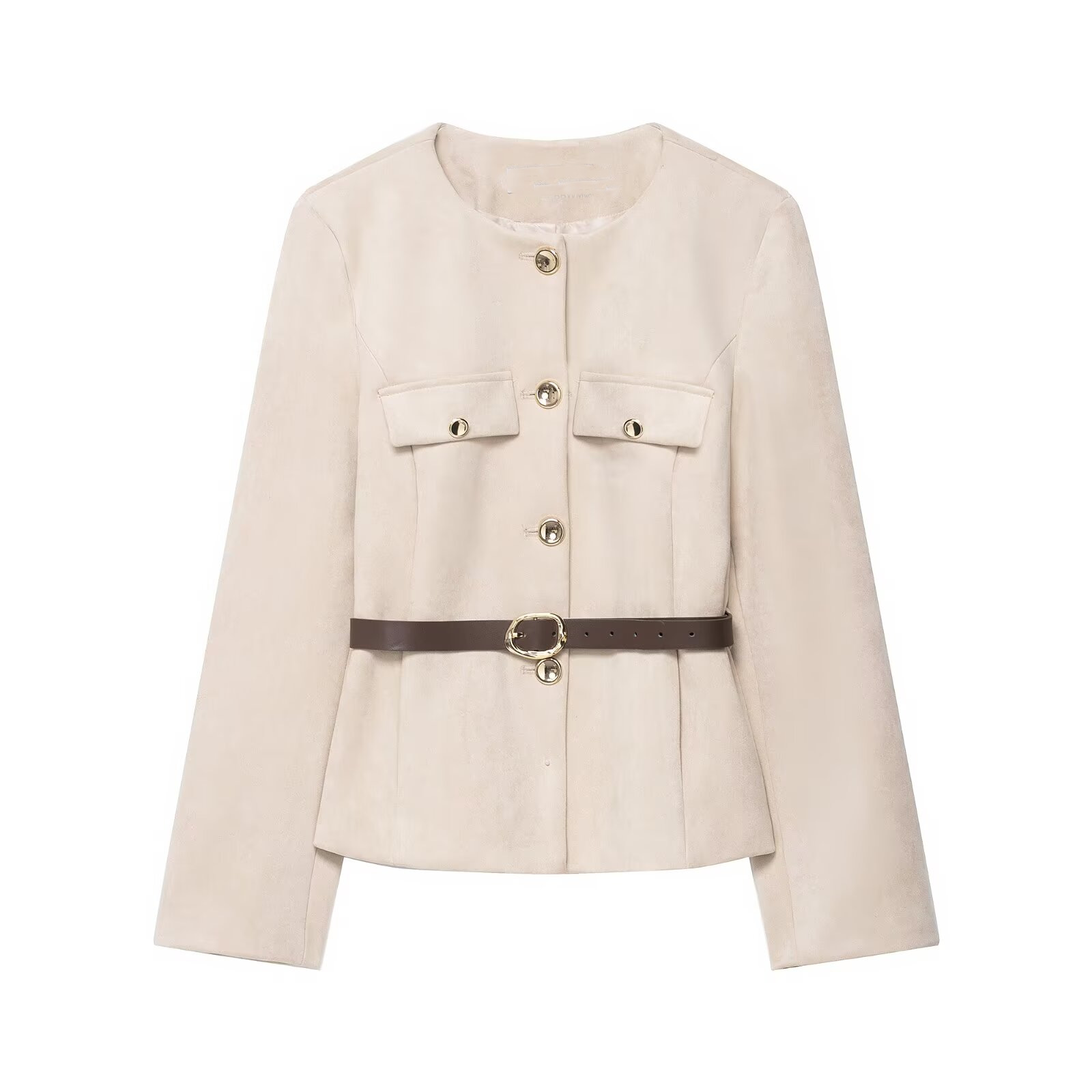 Women'S Belted Blazer | Round Neck Long Sleeve Jacket for Fall Office Wear, Chic, Single Breasted, Regular Fit