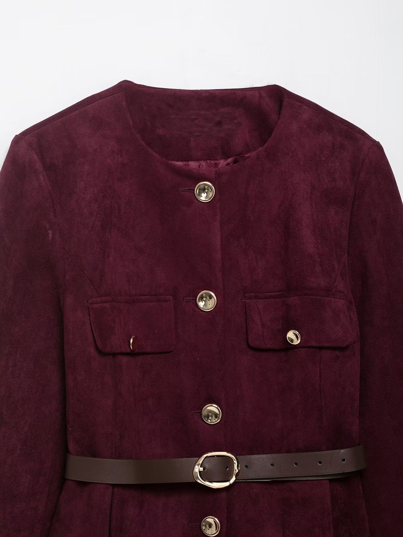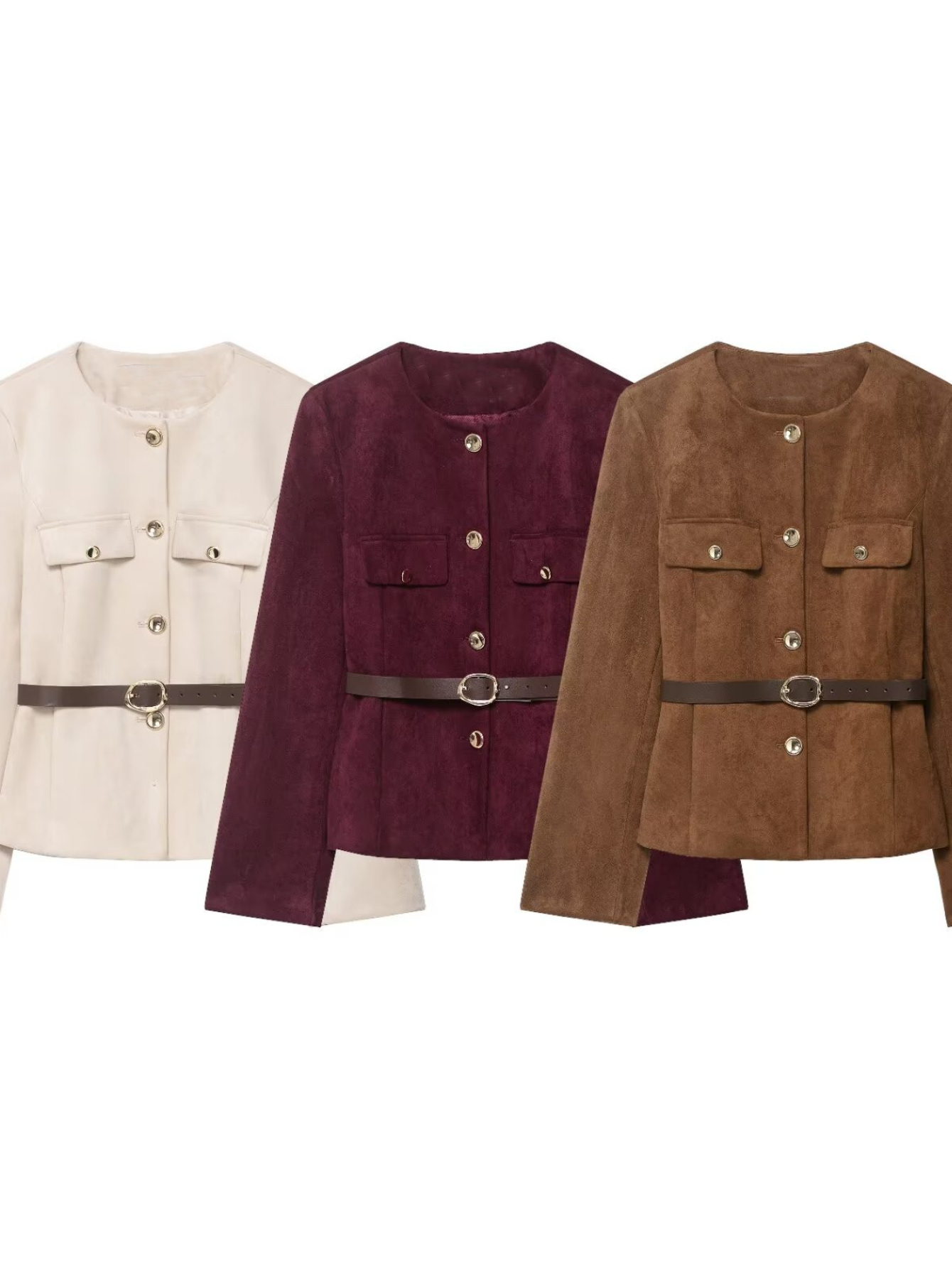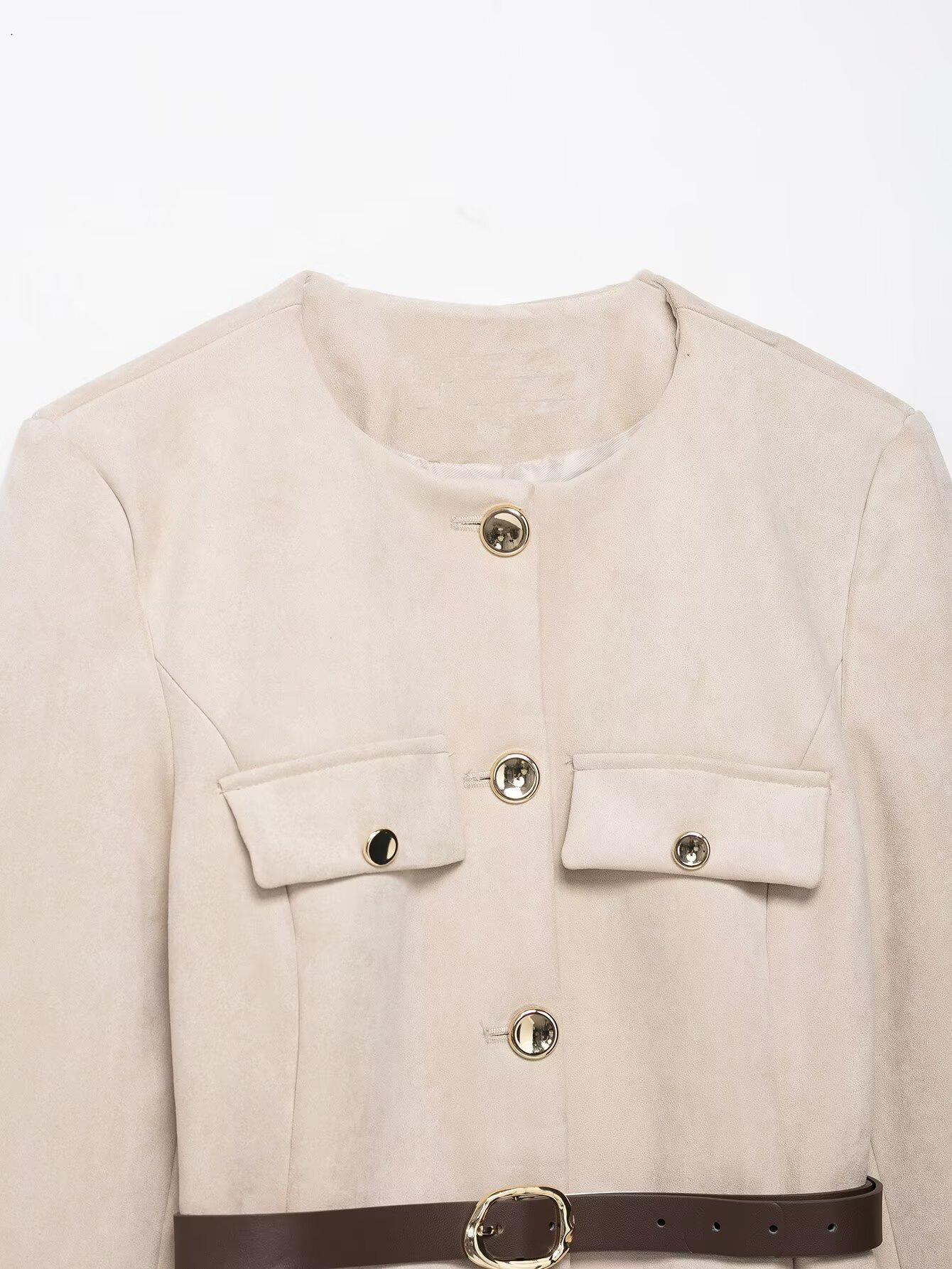 Women'S Belted Blazer | Round Neck Long Sleeve Jacket for Fall Office Wear, Chic, Single Breasted, Regular Fit