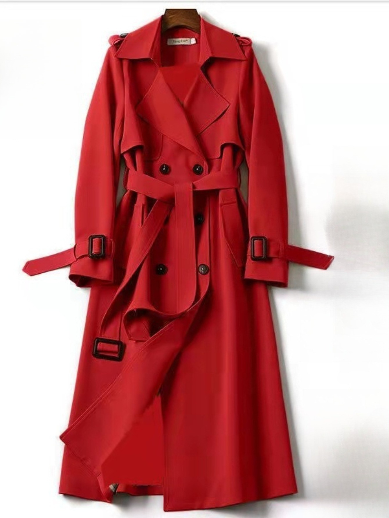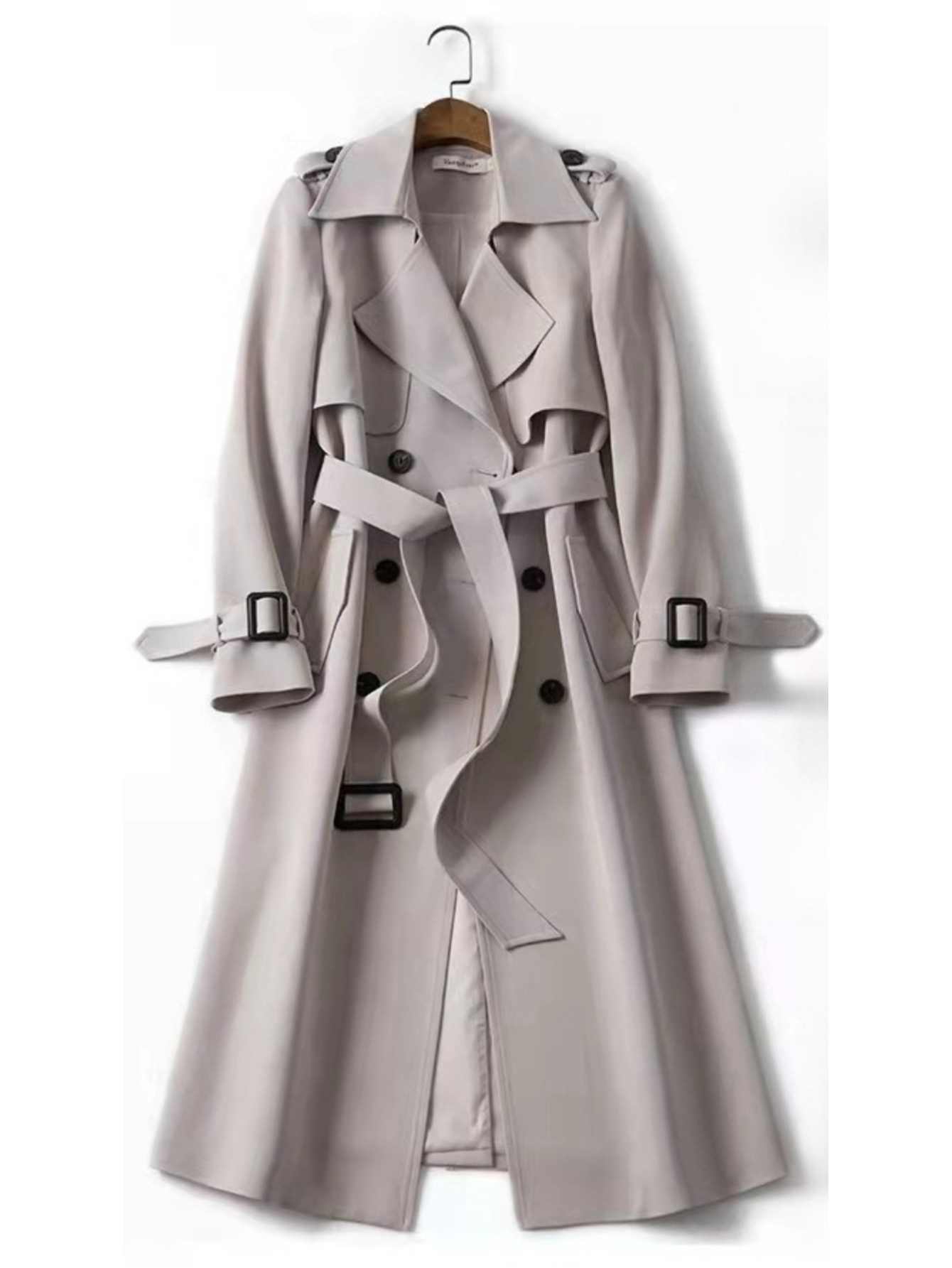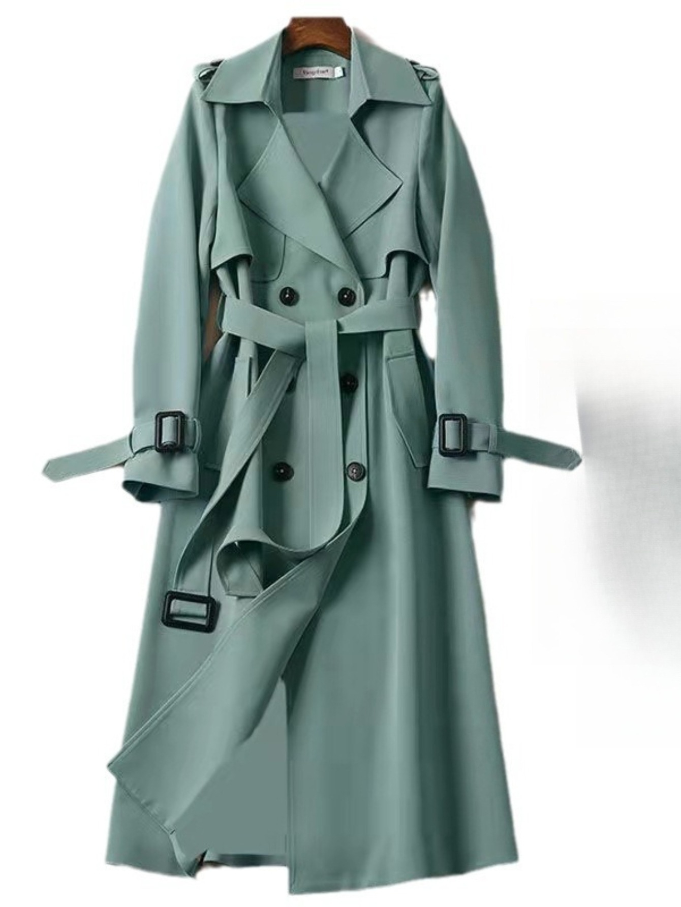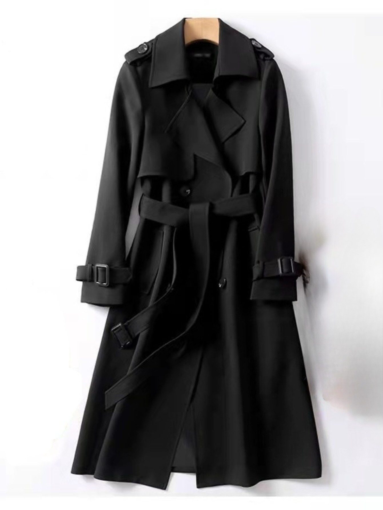 Women's British Style Medium-Length & Long Trench Coat - Knee-Length Button-Front Closure Coat with Wrinkle Detailing, Loose Fit All-Season Outerwear (Machine Washable) for, Casual & Smart-Casual Attire