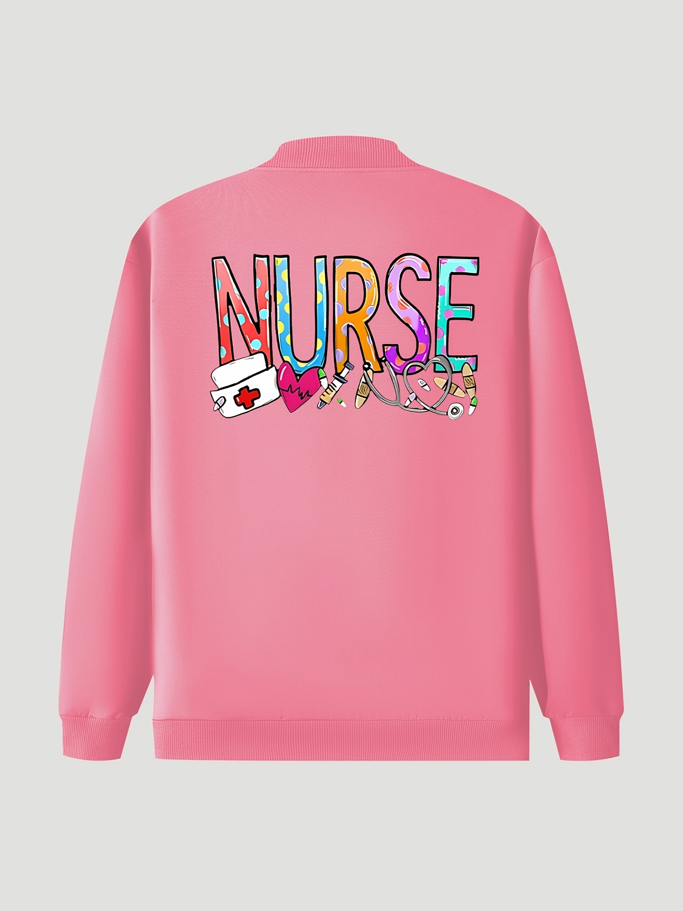 Women'S Casual Zip-Up Jacket with "Nurse" Print, Baseball Collar, Pockets, Slight Stretch, Fabric - Perfect Gift for Nurses, All-Season Outerwear, Nurse Gifts