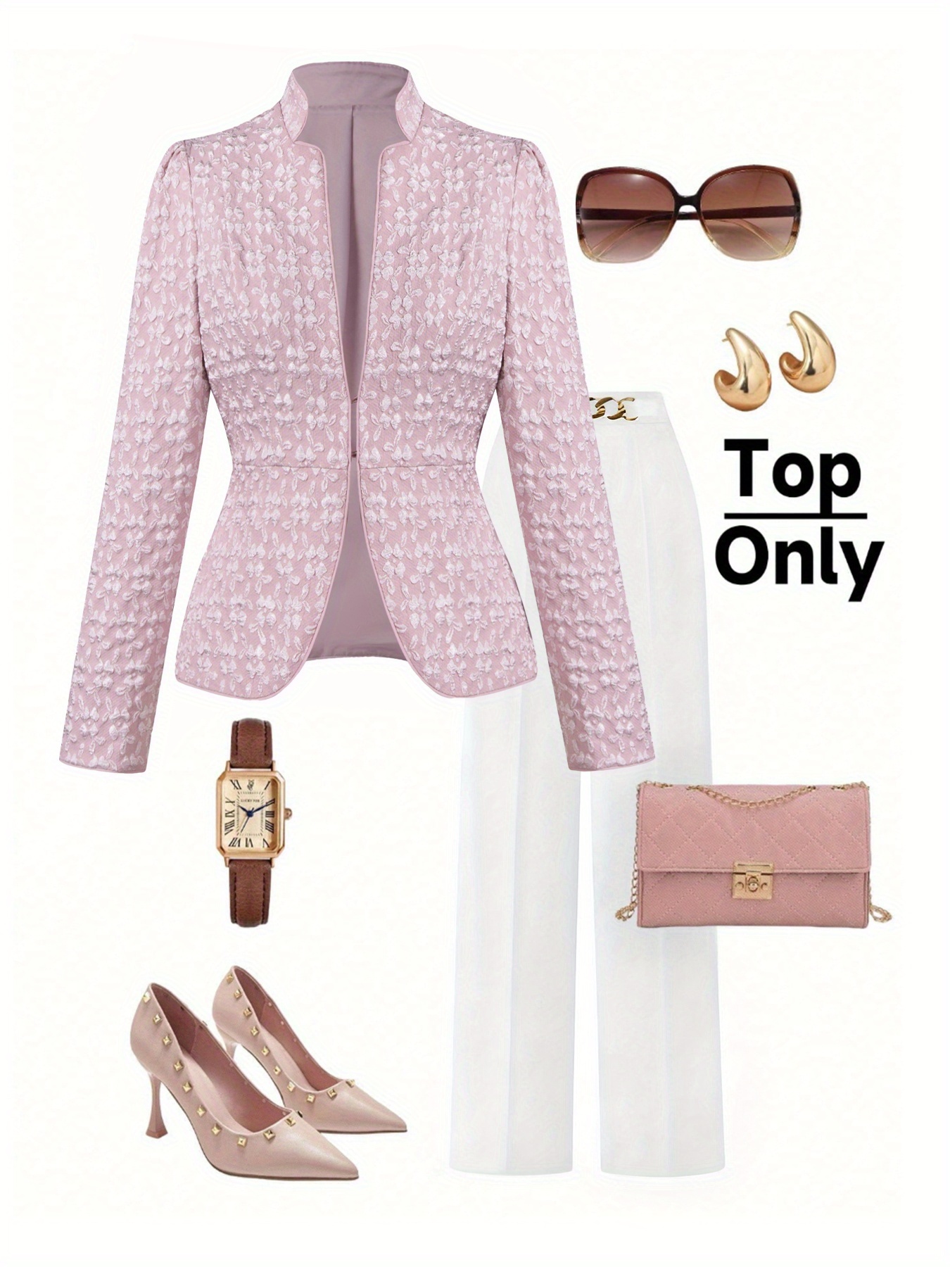 Women'S Elegant Pink Jacquard Coat - Chic Office to Party Outfit, All-Season Formal & Casual Outerwear, Button Front Closure, Structured Fit for Christmas, New Year, Everyday Special Events - Women'S Fashion Coat, Christmas Attire
