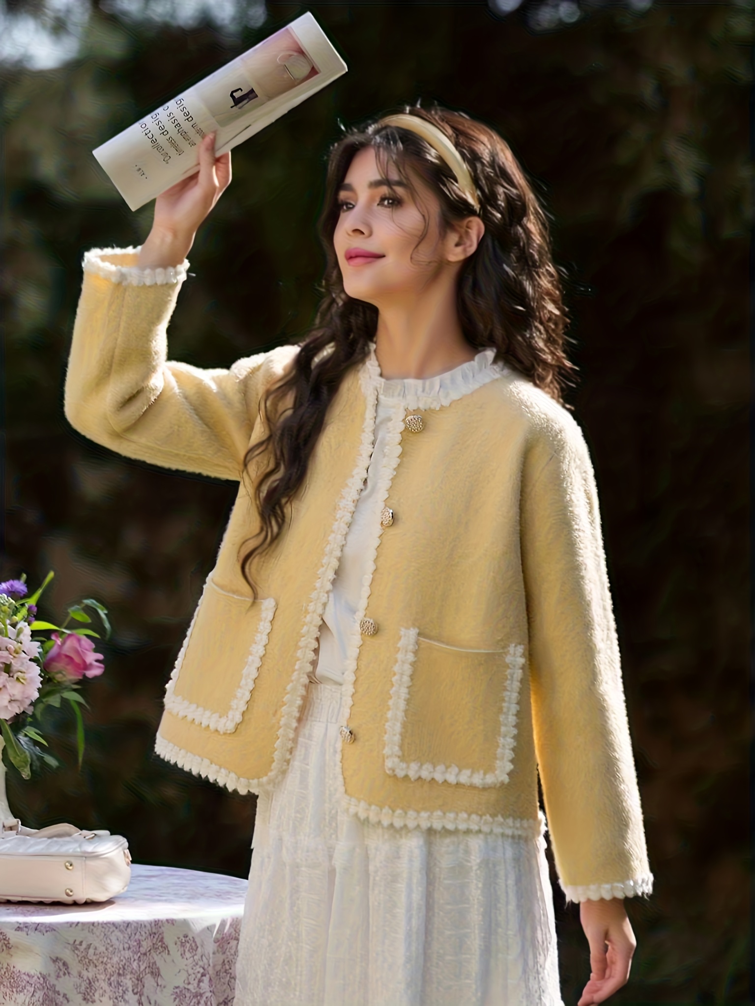 Women's Elegant Solid Color Winter Jacket - Single-Breasted Button Front Coat with Pockets, H-Line Silhouette, Long Sleeve Warm Outerwear for Fall & Winter, Casual or Dressy Occasions