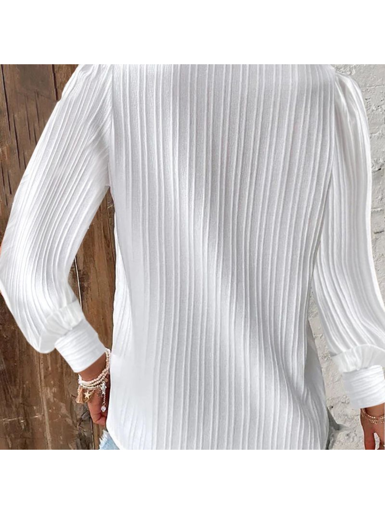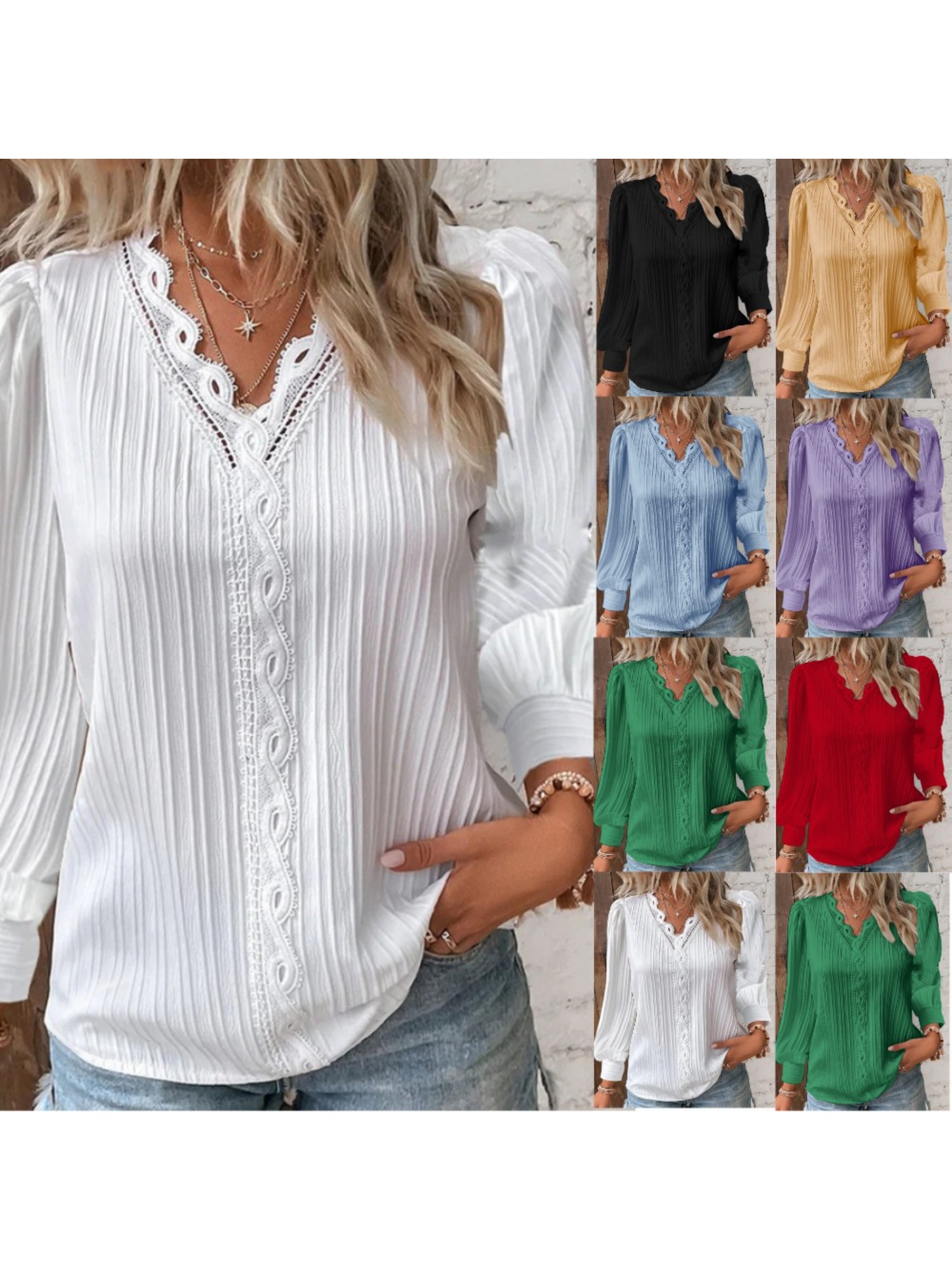 Fall Long Sleeve V-Neck Ruffled Panel Blouse for Women | Feminine Casual, Elegant Style, Solid Color, Suitable for Spring/Fall