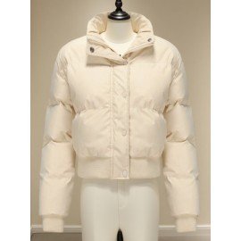 Winter Quilted Puffer Jacket with Turtle Neck (High Collar) - Cropped Coat, Slim Fit Warm Outerwear, Solid Color Casual Style for city to rural cold Weather, Hand Wash/Dry Clean Care - Non-Stretch Puffer Coat