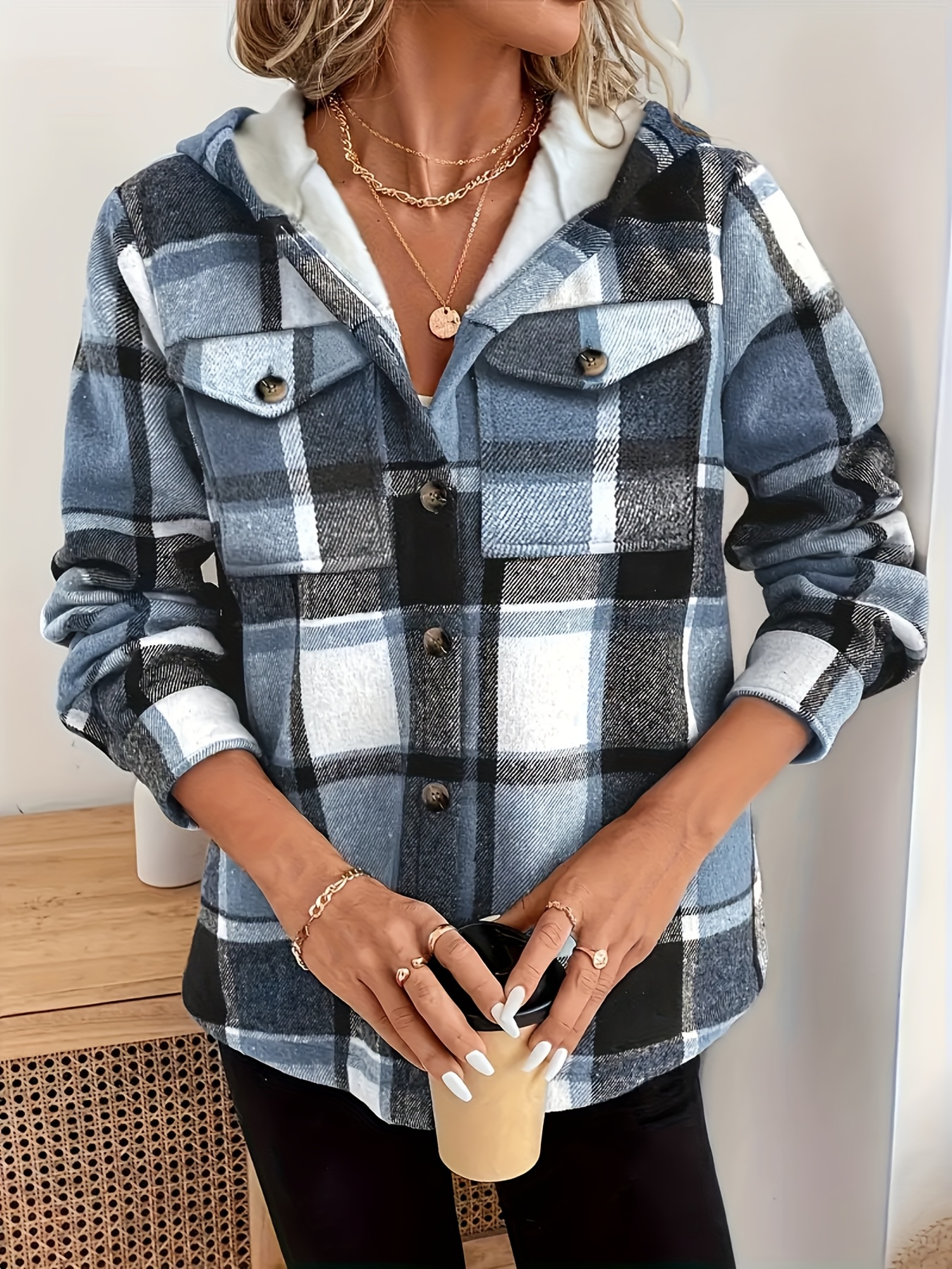 Women's -Lined Plaid Shirt Jacket - Warm Thick Winter Coat with Button Front Closure, Longline Fall Outerwear, Machine Washable Casual Blouse for Christmas & Cold Weather