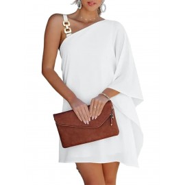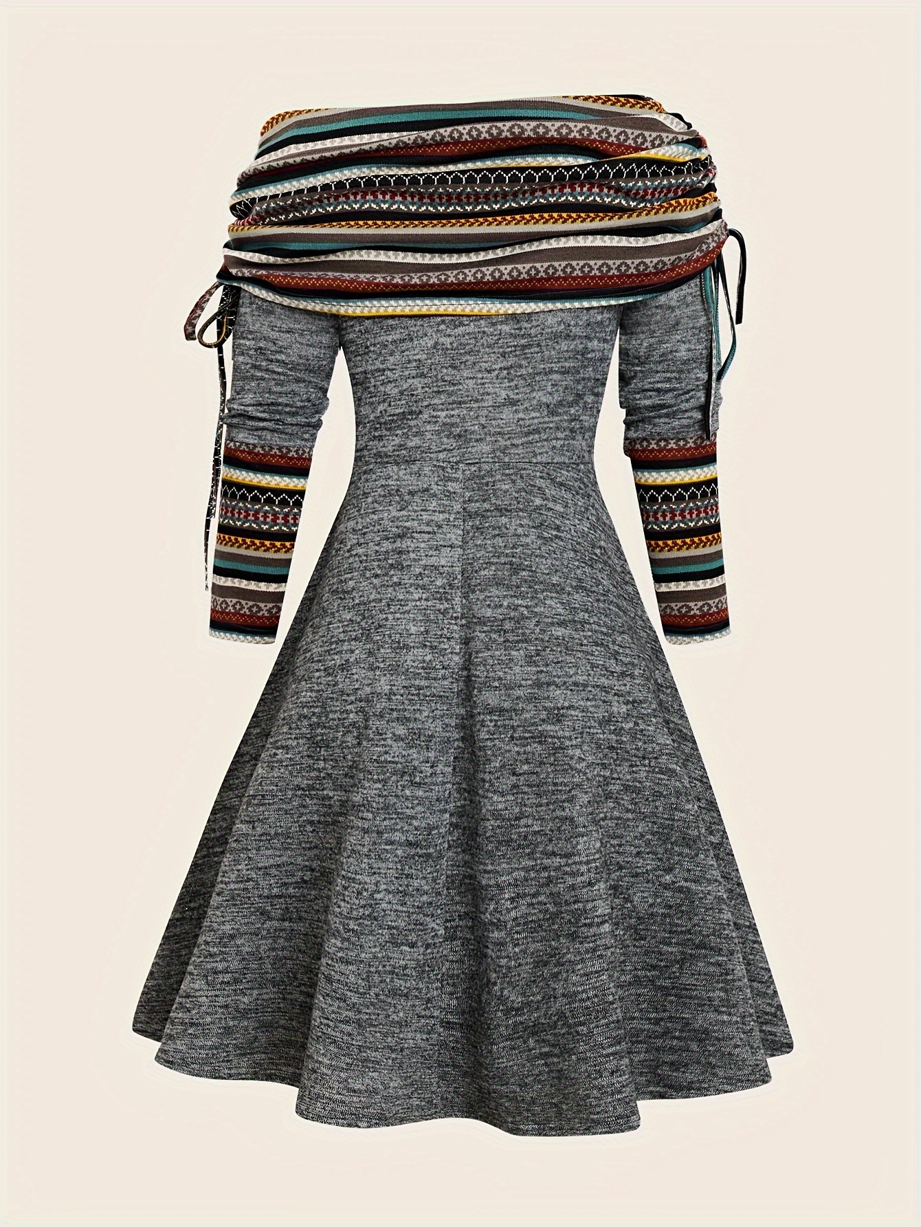 Contrast Striped Drawstring Smocked Dress, Chic Long Sleeve Dress For Spring & Fall, Women's Clothing