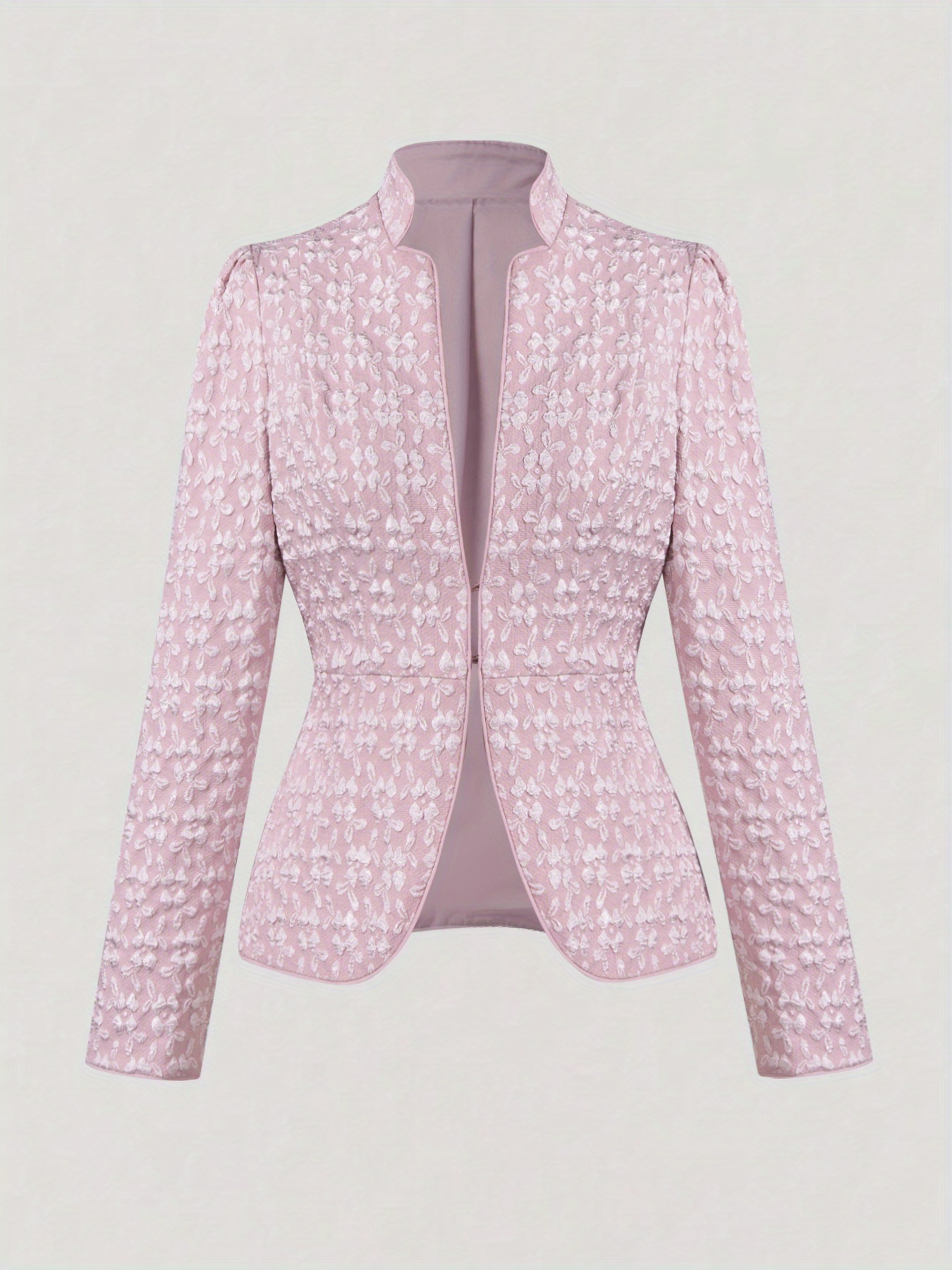 Women'S Elegant Pink Jacquard Coat - Chic Office to Party Outfit, All-Season Formal & Casual Outerwear, Button Front Closure, Structured Fit for Christmas, New Year, Everyday Special Events - Women'S Fashion Coat, Christmas Attire