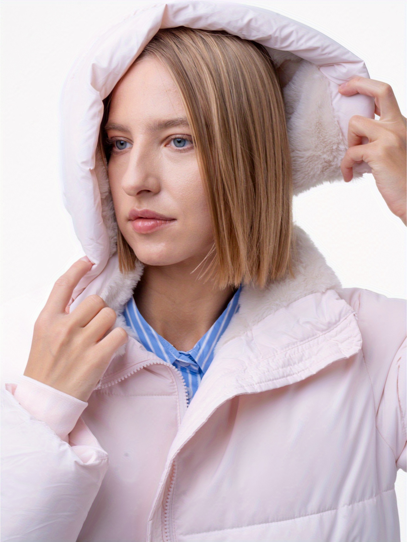 Women's Winter Fleece-Lined Hooded Jacket -Elegant Special & Relaxed Fit Coat with Zipper Front, Long Sleeve Casual Outerwear for Cold Weather, Seasonal Fashion, Warm Fabric, Cozy Material, Casual Attire