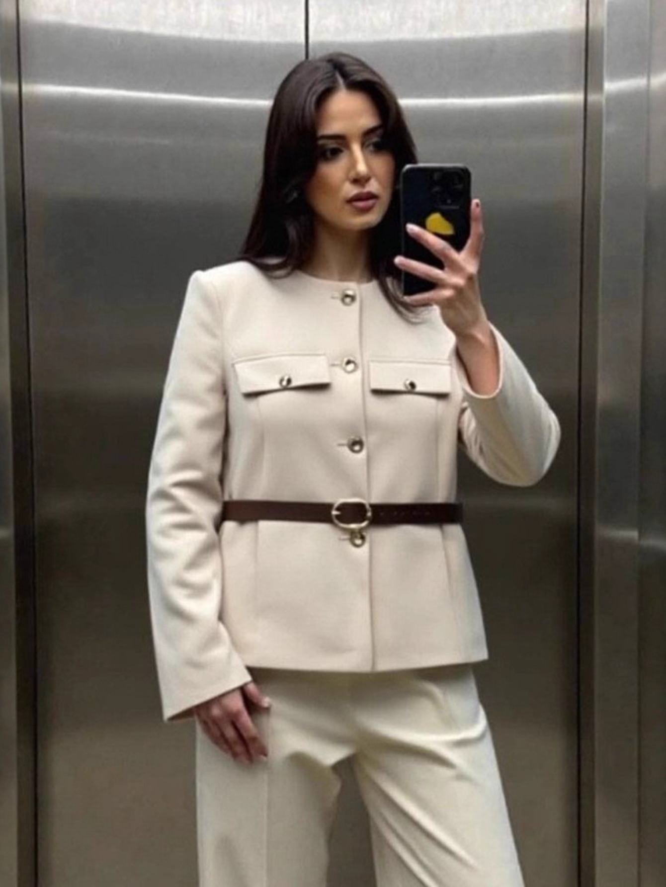 Women'S Belted Blazer | Round Neck Long Sleeve Jacket for Fall Office Wear, Chic, Single Breasted, Regular Fit