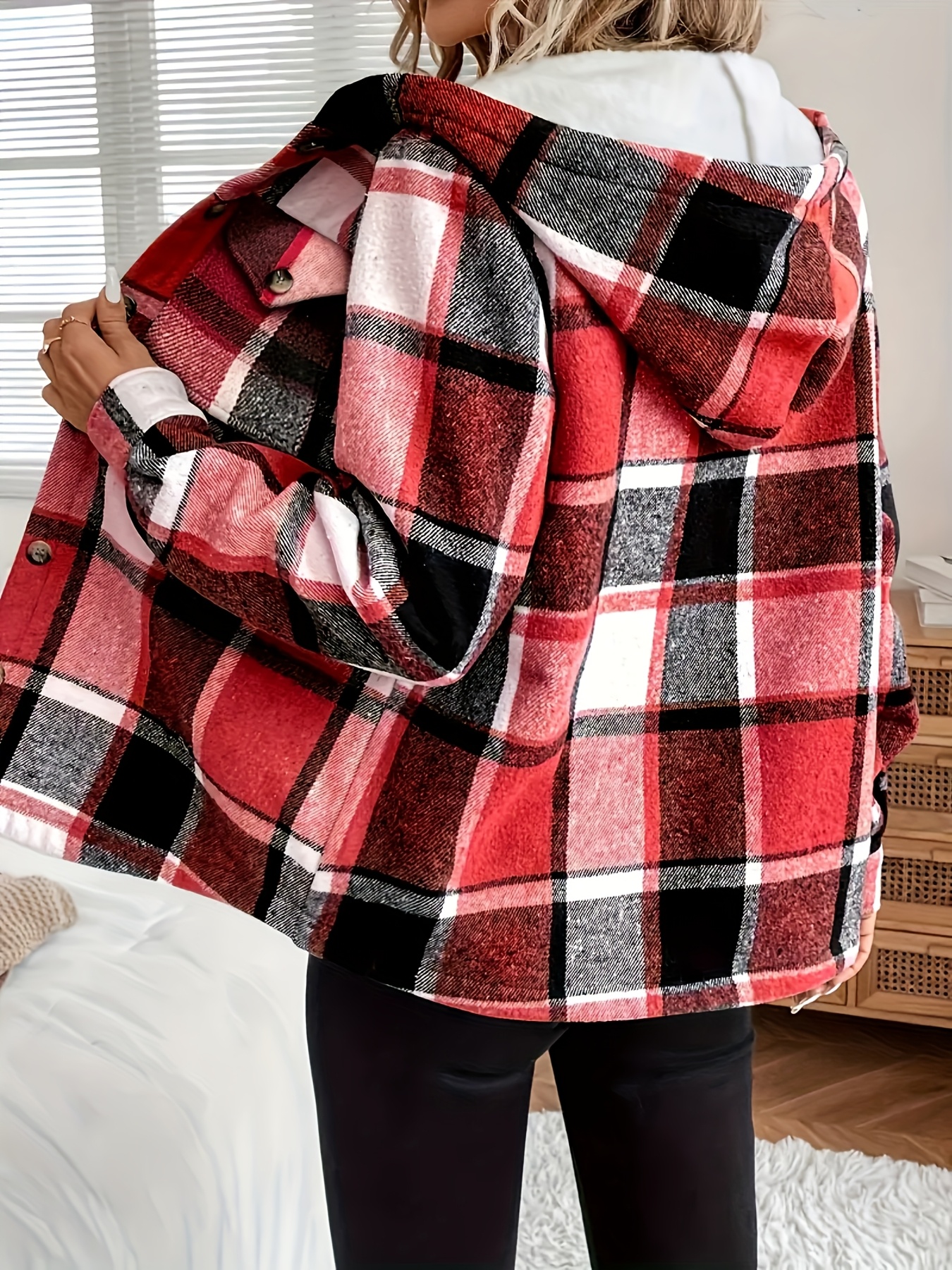 Women's -Lined Plaid Shirt Jacket - Warm Thick Winter Coat with Button Front Closure, Longline Fall Outerwear, Machine Washable Casual Blouse for Christmas & Cold Weather