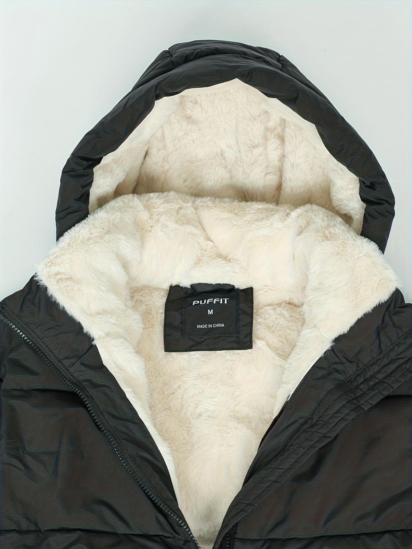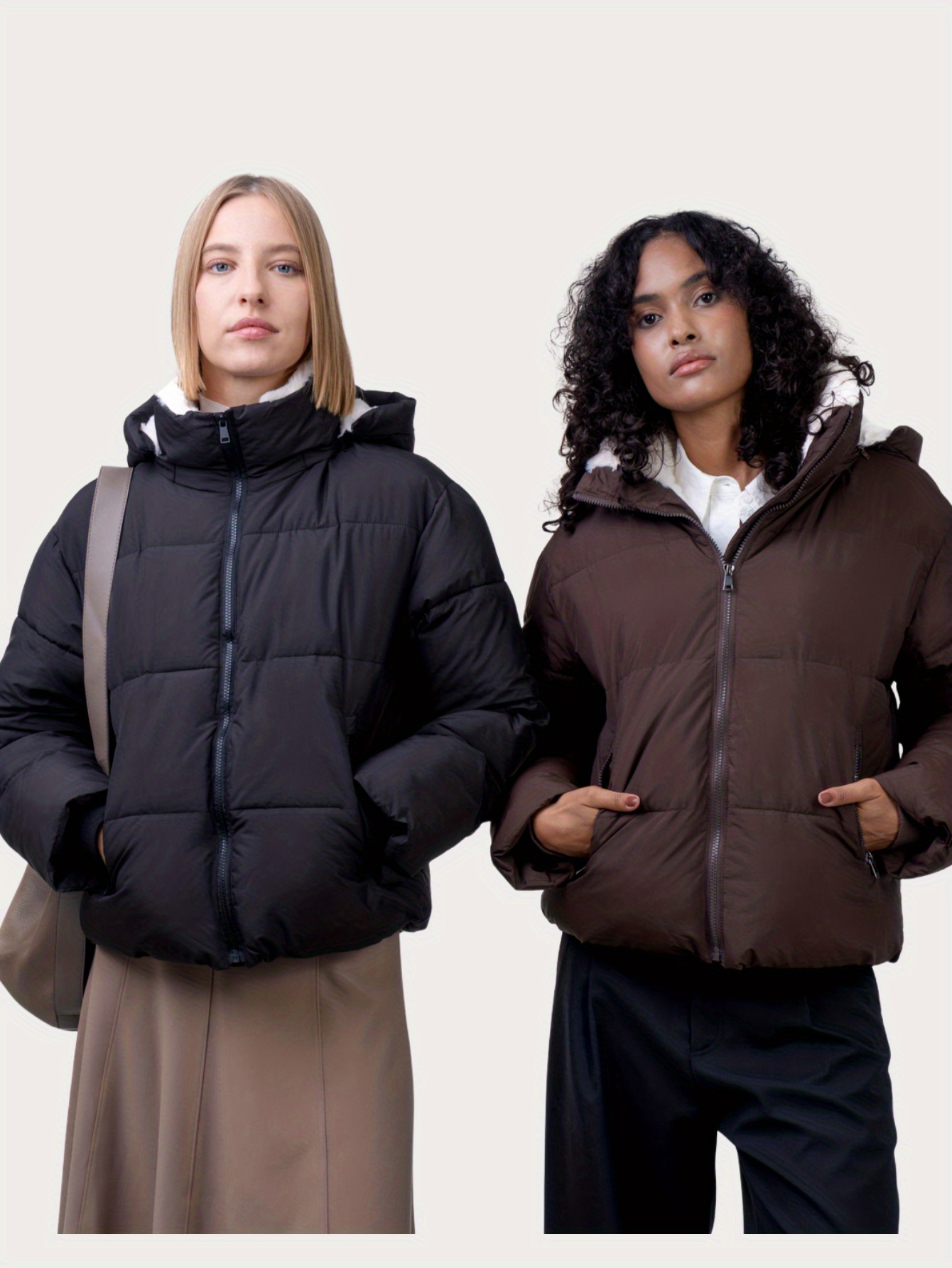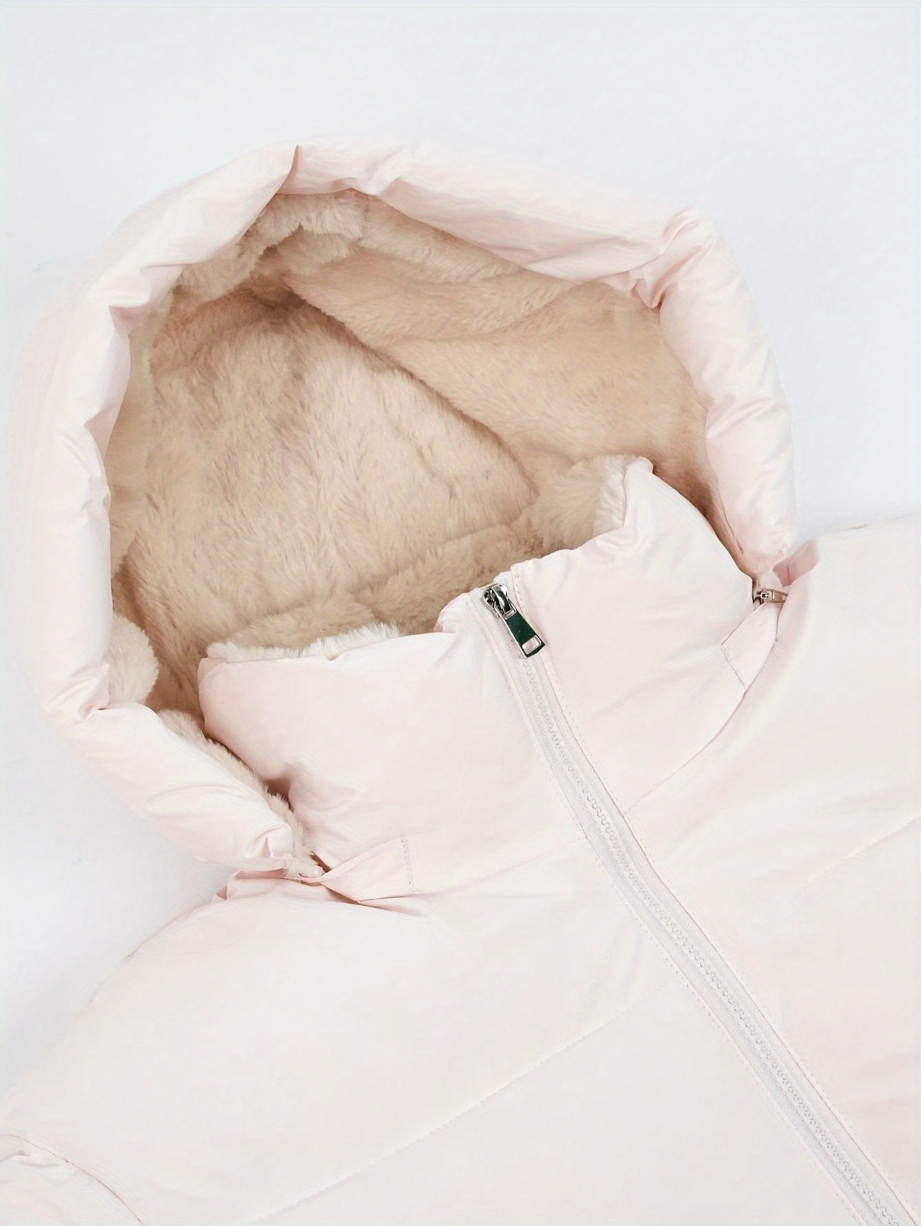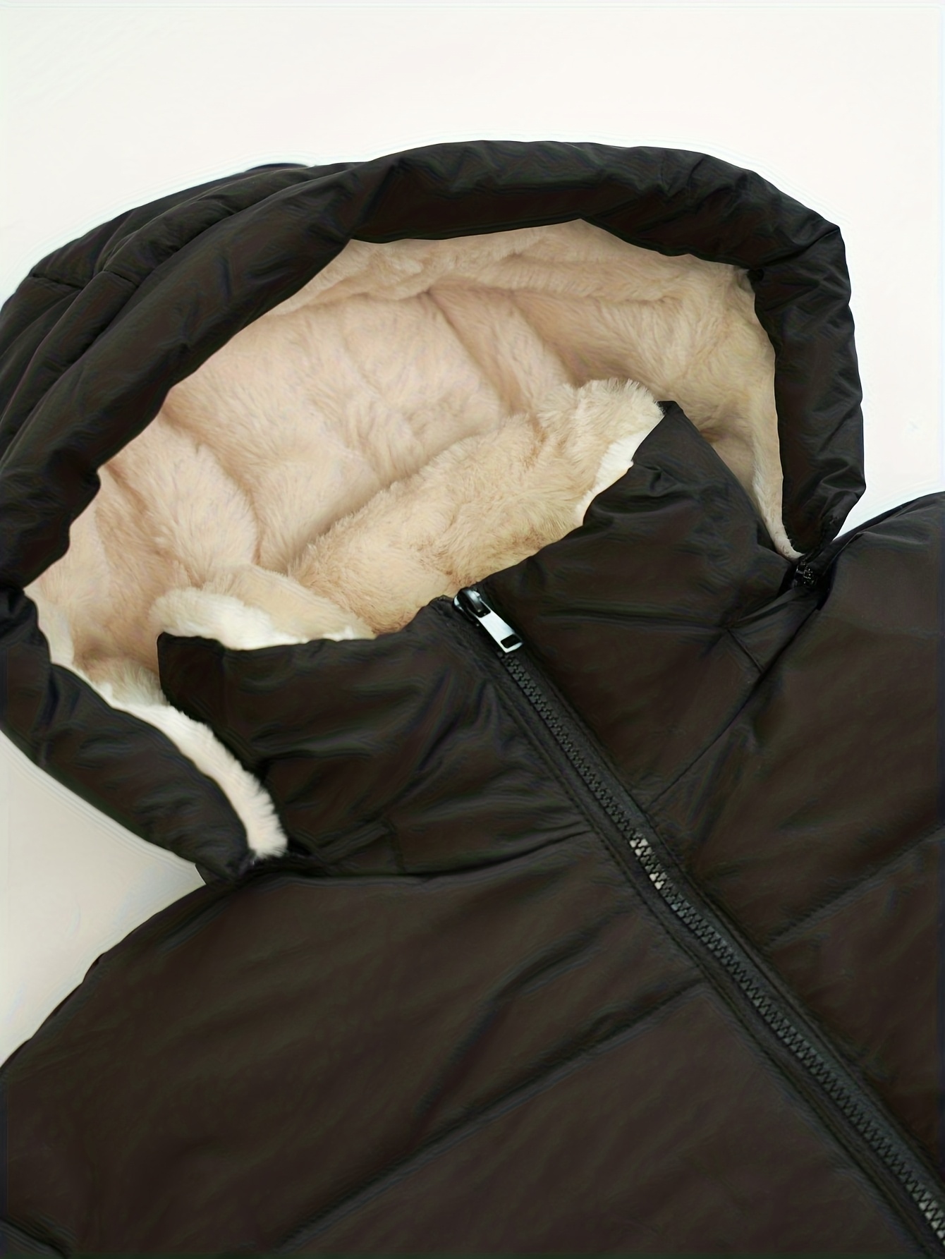 Women's Winter Fleece-Lined Hooded Jacket -Elegant Special & Relaxed Fit Coat with Zipper Front, Long Sleeve Casual Outerwear for Cold Weather, Seasonal Fashion, Warm Fabric, Cozy Material, Casual Attire