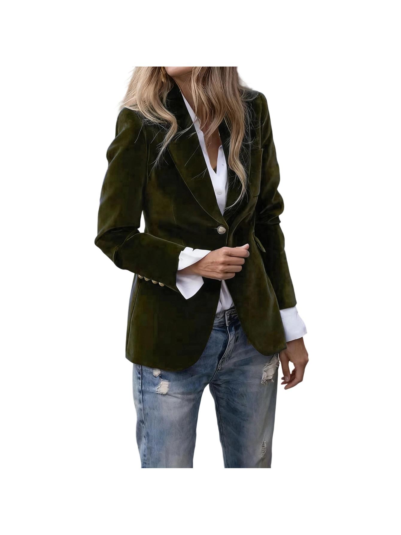 Women'S Winter Solid Color Tailored Suit Jacket - Casual to Semi-Formal Coat with Zipper Closure, H-Line Silhouette & Round Neck, Long Sleeve Layering Outerwear for Fall/Winter, Versatile Cardigan Set in GreenNavy/Charcoal - No Belt Required